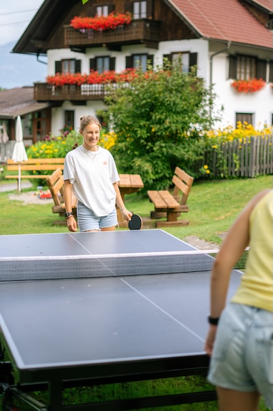 Während die Kinder beschäftigt sind, dürfen auch Erwachsene mal durchatmen. Der Blick vom Pool schweift weit über das Tal, die Sauna wartet nach einem langen Wandertag, und am Grillplatz oder auf der Sonnenliege lässt sich der Tag gemütlich ausklingen. Wer möchte, nutzt die Zeit für Bewegung – beim Tischtennis, Nordic Walking oder einer kleinen Fitnessrunde im Grünen. Oder einfach für sich selbst. Ohne Termine, ohne Trubel. Nur mit dem Gefühl: Hier ist gut sein.